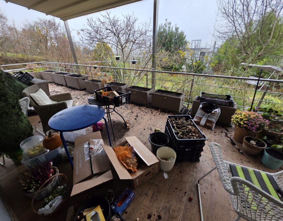 Obrovská rastlina krasuľky vykvutla na poslednú chvíľu.Zasadila som 100 cibúľ tulipánov ľaliokvetých.Ale najprv sa museli pozbierať orechy a vyplieť burina.Chryzantémkam sa tu už darí niekoľko sezón.Jesenná dekorácia pre maminu. Je tam chryzantéma, cyklámen a biele čemerice.