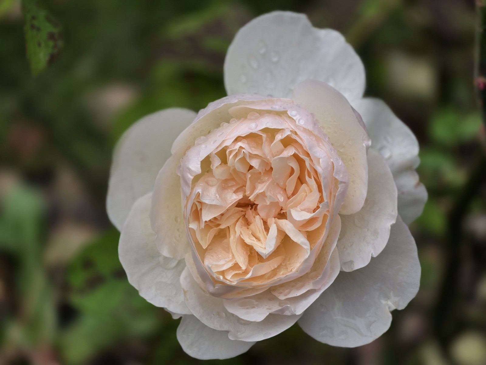 Anglická ruža The Lichtfield Angel. Zjavne prosperuje v chladnejšom a vlhkejšom prostredí.