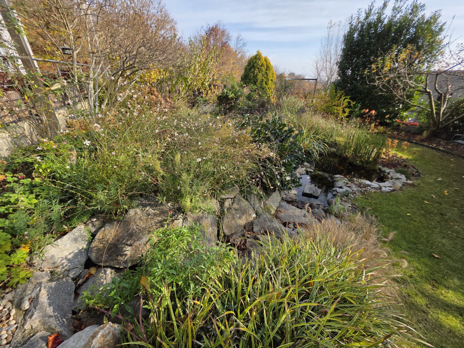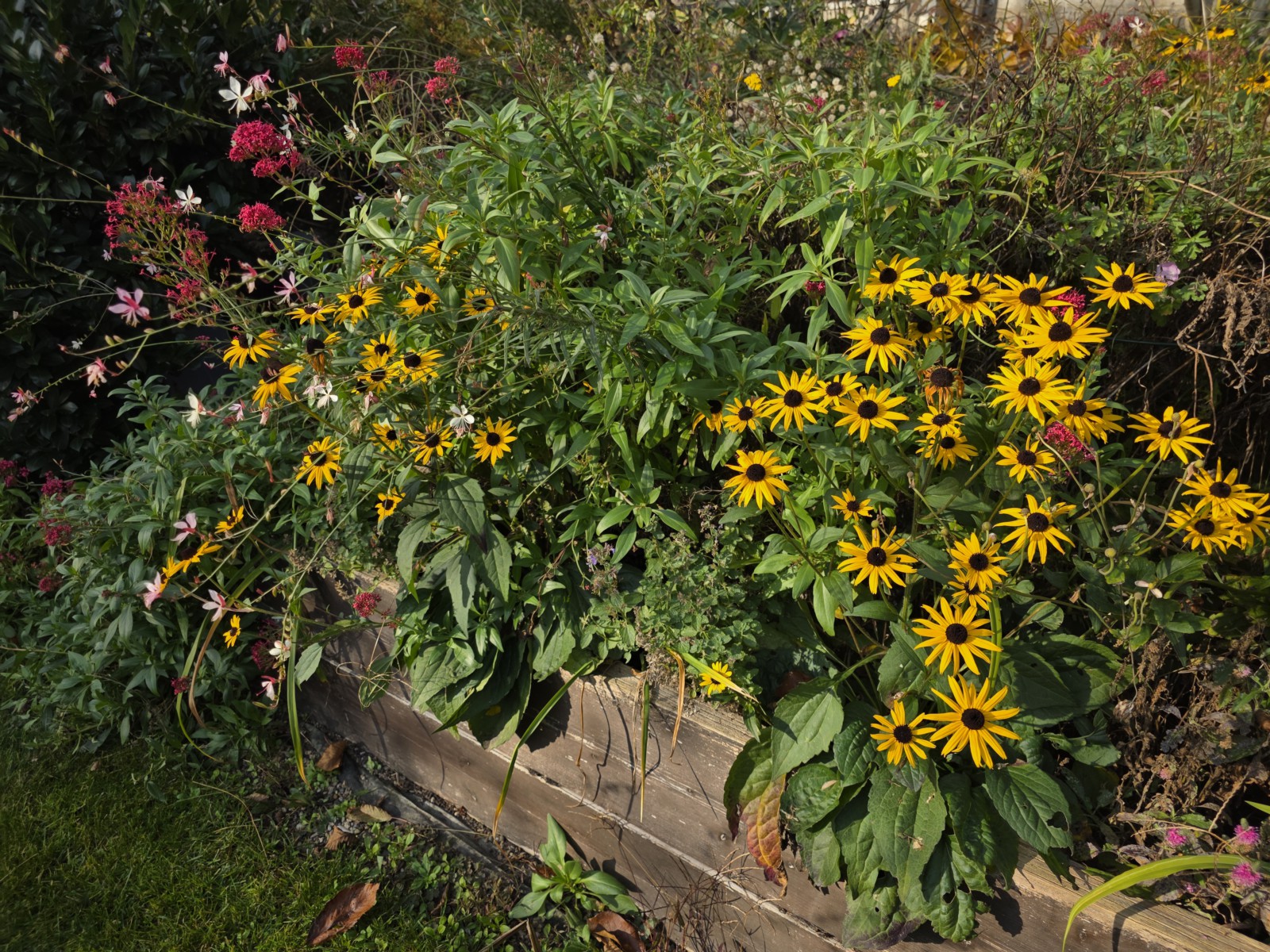 Trvalky vo zvýšenom zahone pod terasou stále kvitnú.