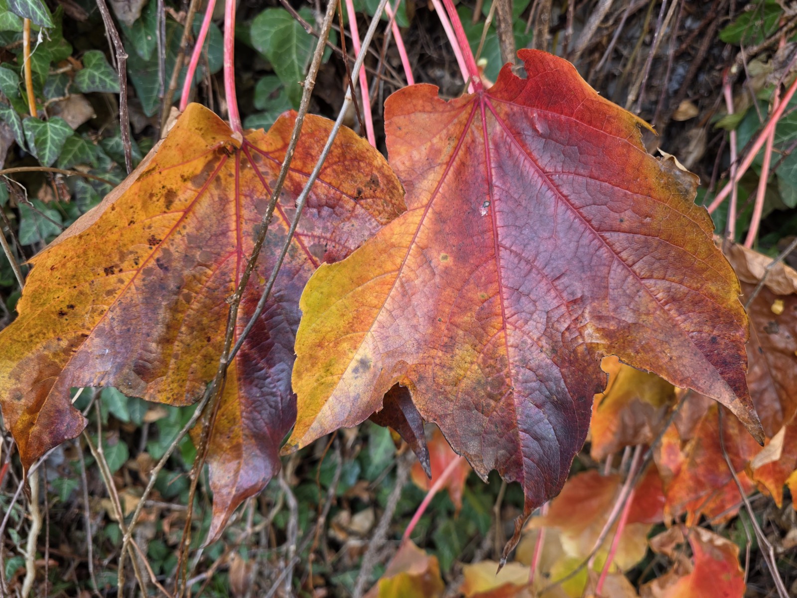 Pavinič päťprstý dávno opadal, pavinič trojlaločný má stále farebné listy.