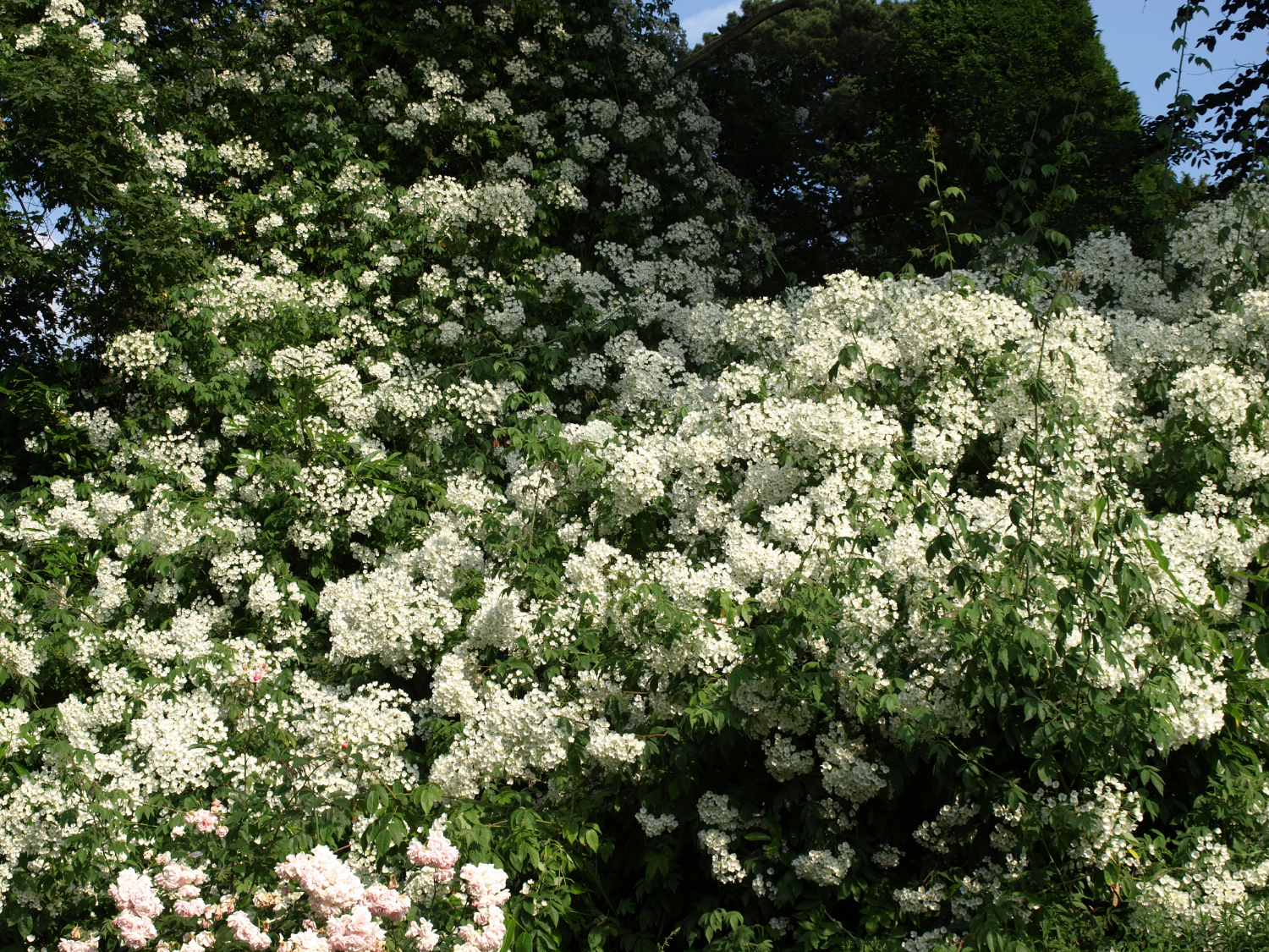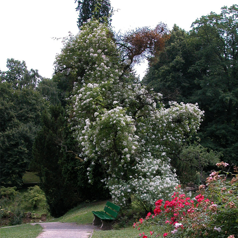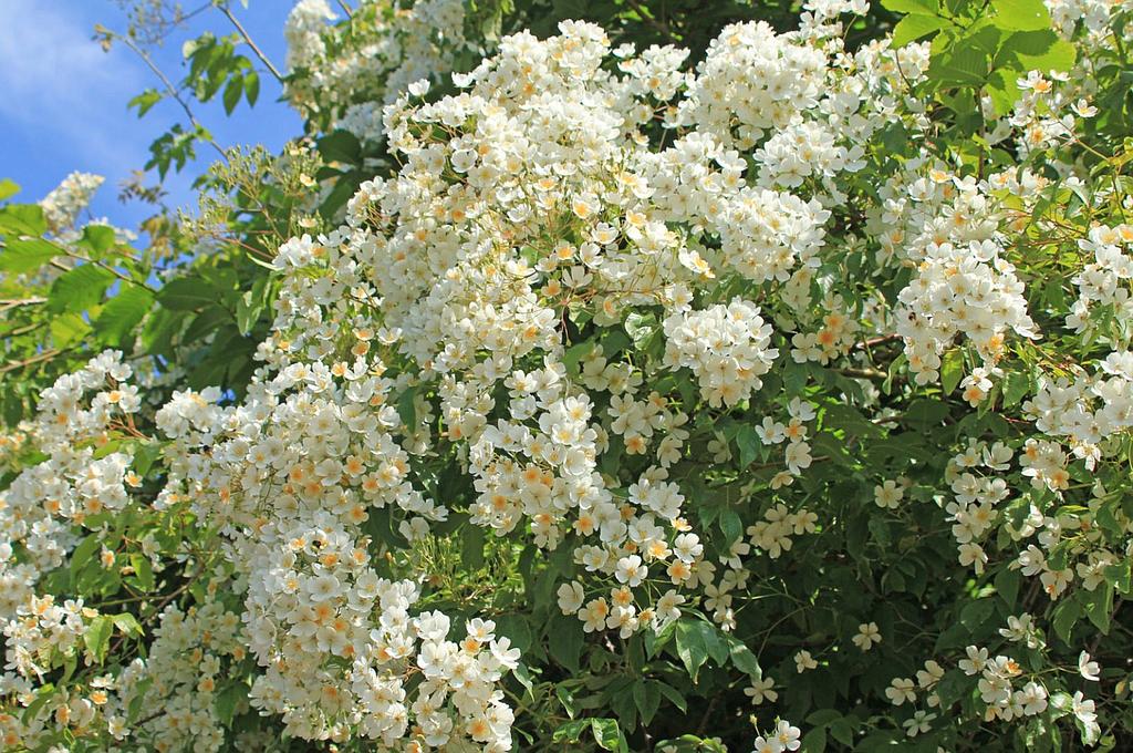 Vtipné na tom bolo to, že táto ruža Rosa filipes ‘Kiftsgate’ je najsilnejšie rastúca britská ruža. V historickej záhrade Kiftsgate Court Garden každý rok vykazuje obrovský rast a svojím rozpínavým rastom udusila tri stromy. Na prelome júna a júla poskytuje úchvatný pohľad, keď jej husté trsy bielych kvetov pripomínajú kaskádový vodopád medzi stromami. Kiftsgate Rose je rambler, kvitne raz ročne, ale o to bohatšie.
