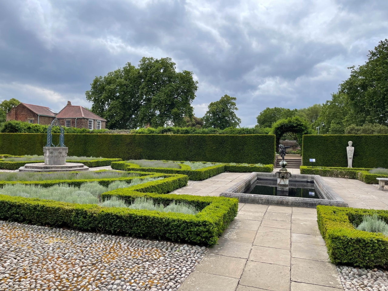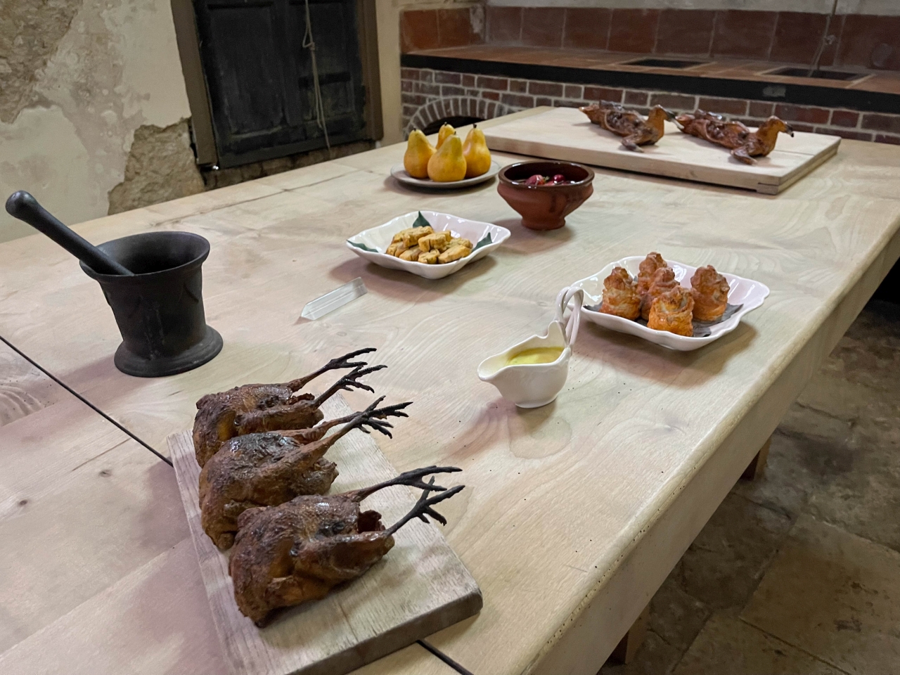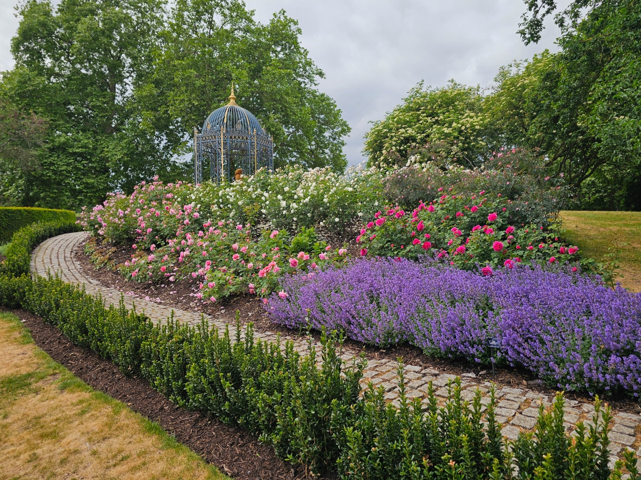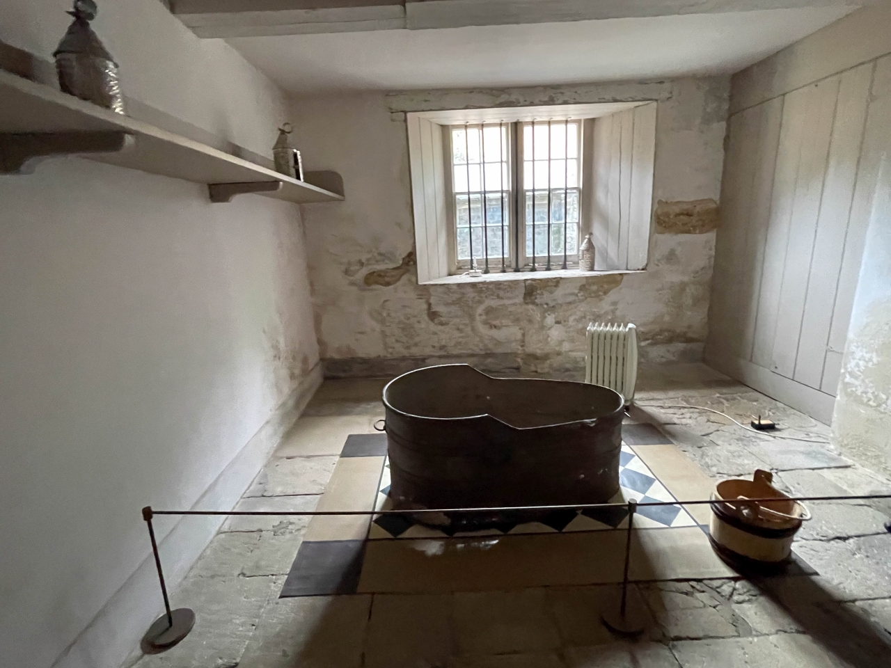 Historická kuchyňa zámku v Kew. Mali sme veľmi zanietenú mladú sprievodkyňu, ktorá nám hovorila o tom ako sa plánovali mnohochodové večere. A tiež nám ukázala pôvodnú vaňu v ktorej sa kúpal panovník v kuchynskej budove, aby služobníctvo nemuselo nosiť horúcu vodu do paláca.Kuchynská záhradaKew Pallace a záhrady okoloKrásna ružová záhrada za Kew Castle